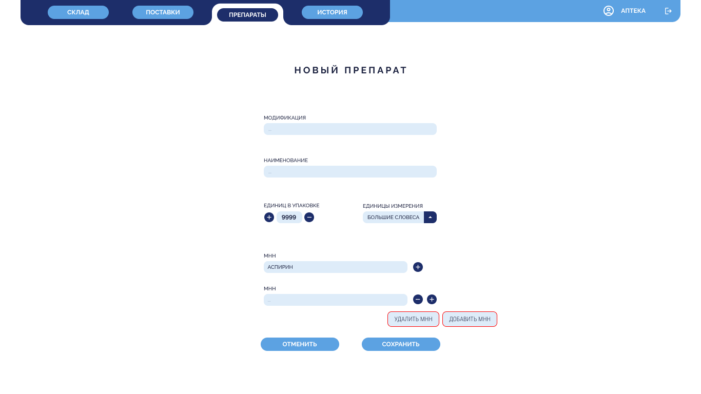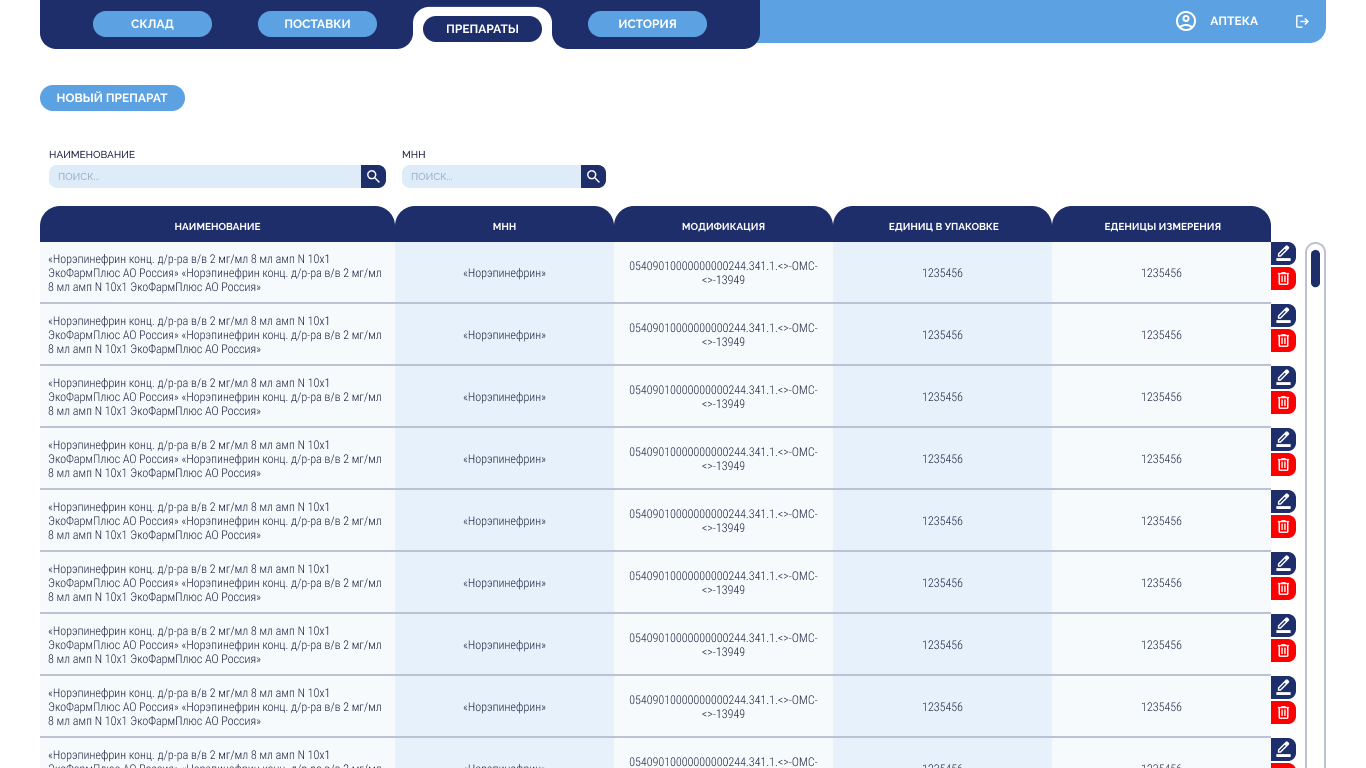 Требовалось внедрить прозрачную, централизованную систему учёта лекарств, включающую