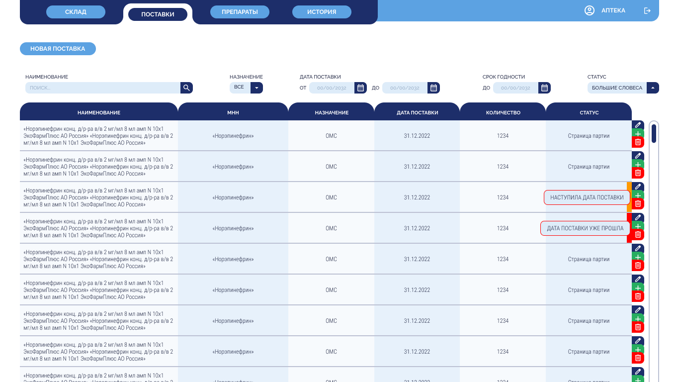 Приёмка препаратов на аптечный склад с контролем входящей партии