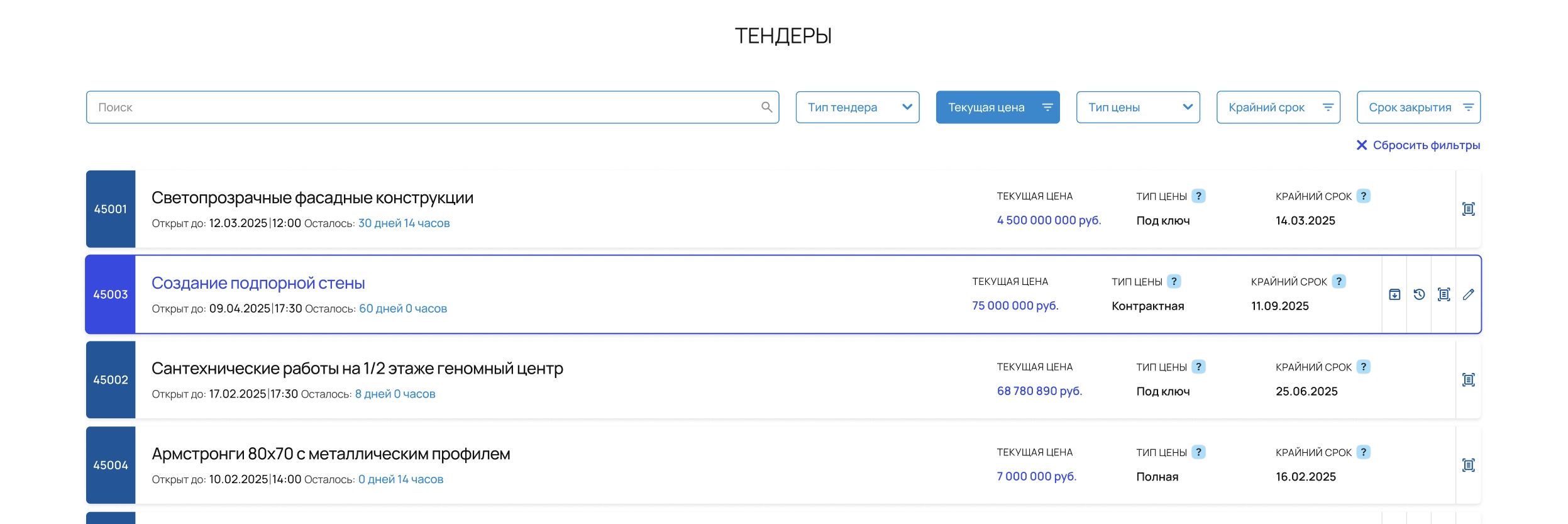 Все текущие и прошедшие тендеры отображаются на едином цифровом ресурсе — легко анализировать, легко находить нужные данные